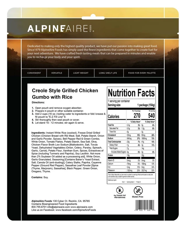 Be the first to review “AlpineAire Creole Grilled Chicken Gumbo W/Rice” Cancel reply