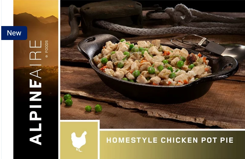Tender chicken ( white meat chicken) in a buttery gravy with peas, onions, potatoes, and carrots seasoned with thyme.
