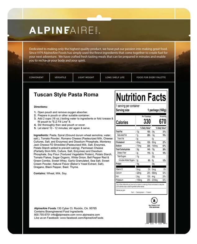 Be the first to review “AlpineAire Tuscan Style Pasta Roma” Cancel reply