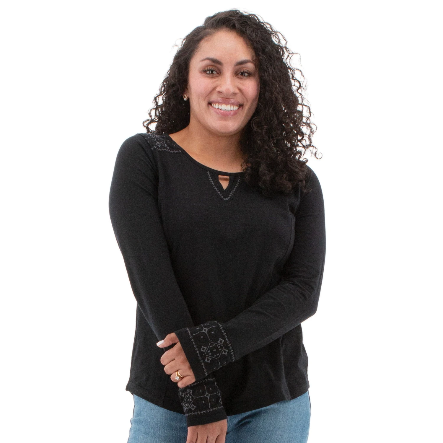You will fall in love with the comfortable, silky fabric of the Addison Top made from a combination of TENCEL™ Lyocell and organic cotton. Breathable, quick-drying, and strong, this sustainable jersey leaves a smaller footprint on the environment. Did we mention how well it drapes? The fabric is cut with princess seams at the side and a center seam at the back. This top is as flattering as it is comfortable. Enjoy pretty, feminine details such as the V-notch neck, tonal embroidery details, and a rounded shirttail.