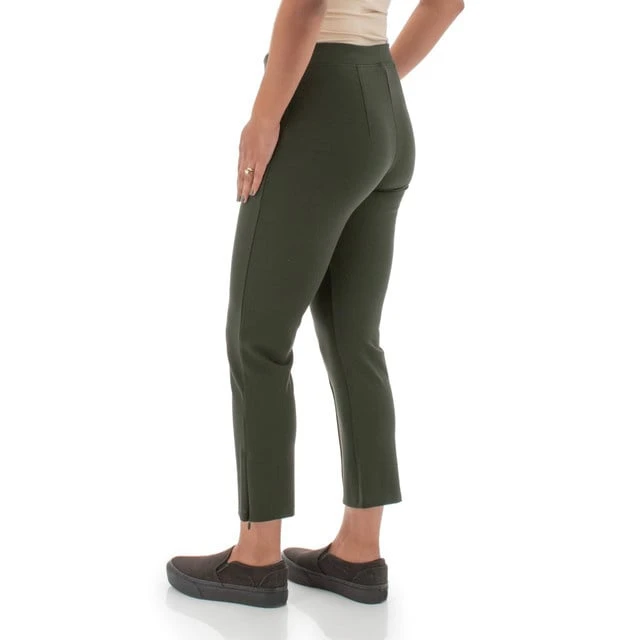 It’s not too good to be true; the Roma Crop Pant is both suitable for work and feels as comfortable as a legging. Dress this pull-on pant up for any occasion: dinner, running errands, and girls’ night in. Its fabric makes this pant special. It is crafted from rayon, nylon, and spandex into a ponte knit, which is firmer, more stable, and thicker than a normal jersey, but feels just as beautiful against the skin. The straight fit is spectacular, flattering any form from hip to cropped hem. Two surprises rise this pant above the rest: real pockets and a cute zipper detail at the leg opening.