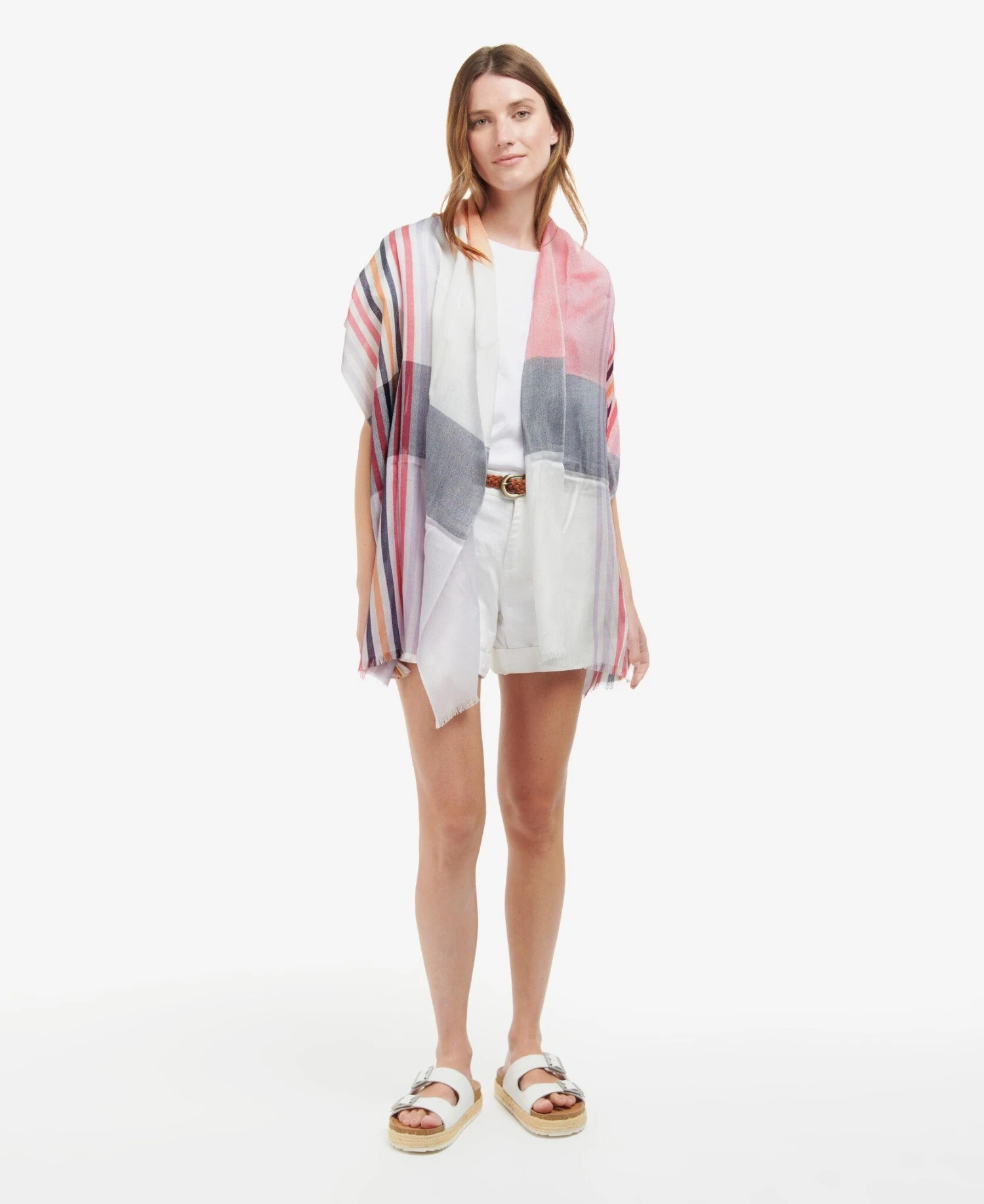 The Kendra scarf is a colourful choice to brighten up everyday looks. In a check and stripe design, it’s finished with fringing to the hem for an elegant touch.