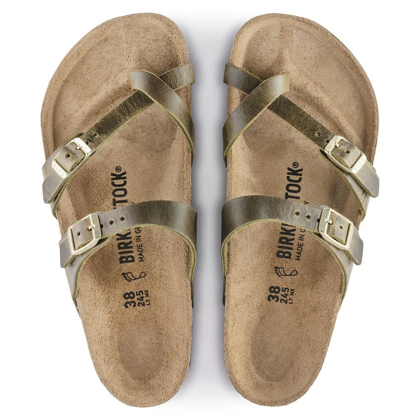 The Mayari from BIRKENSTOCK – an elegantly comfortable sandal with adjustable, crisscrossing straps that form a single loop around the toe. Classic support and adjustability, designed beautifully. The upper is made from oiled nubuck leather.
