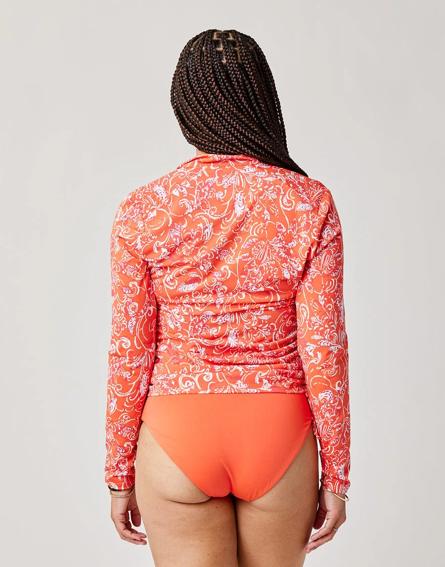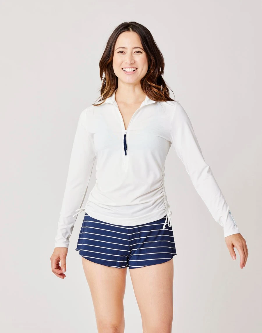 The Cruz rashguard offers lightweight and versatile sun protection with long sleeves for maximum cover up. Quick dry fabric is great for water sports or hiking. Zip neck and shirred sides allow for flattering fitted shape and cooling options.