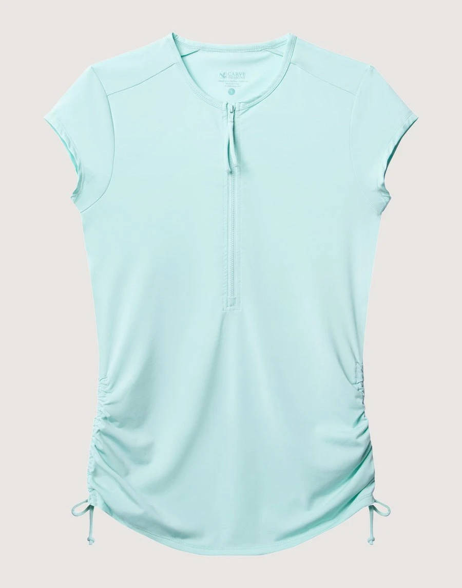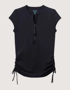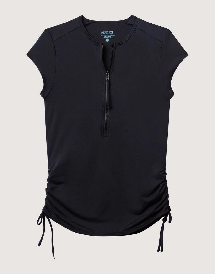 The quick-dry Dawson rashguard offers lightweight and versatile sun protection. Use for water sports or hiking. Zip neck and shirred sides allow for flattering fitted shape and cooling options.