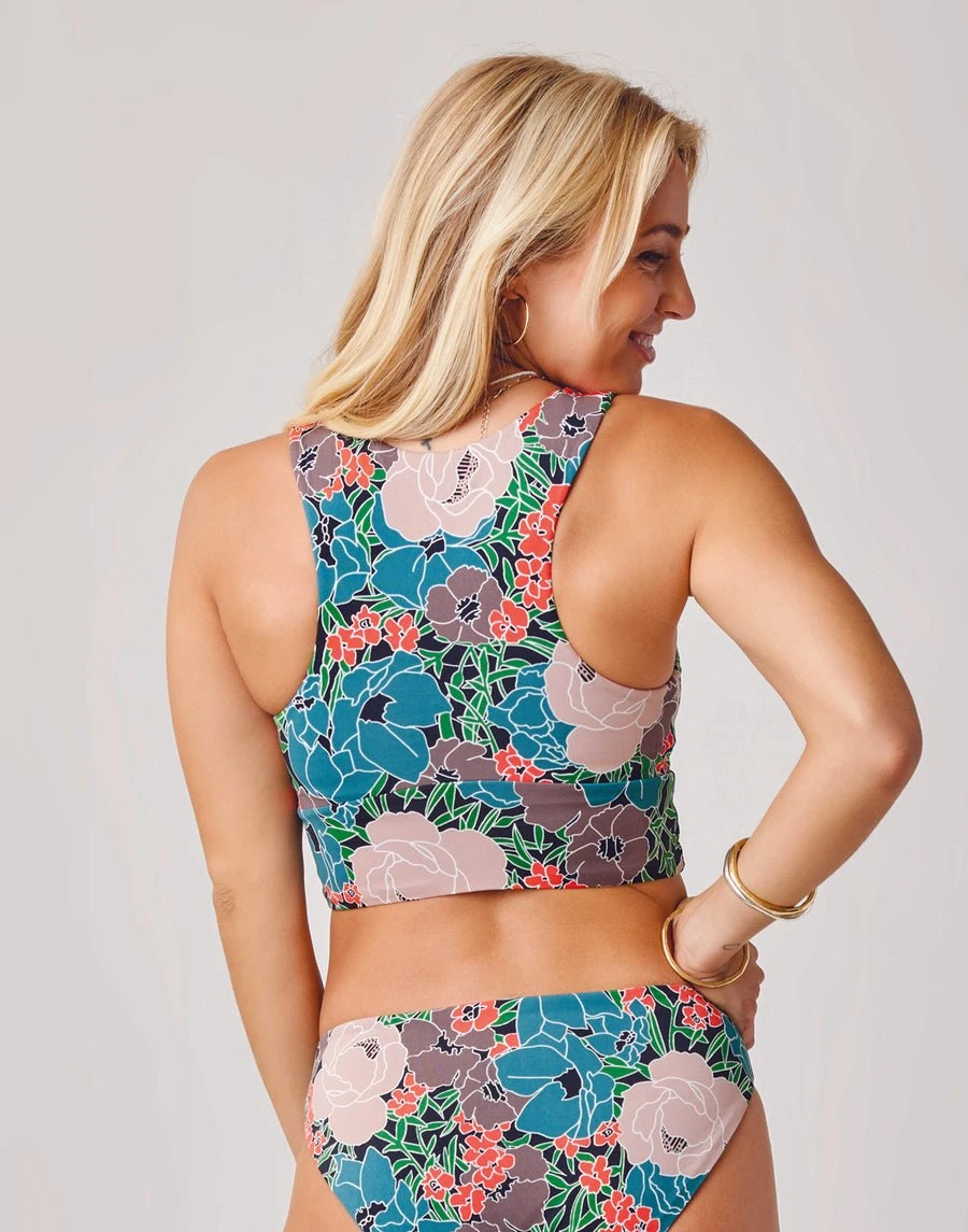 The Tofino’s longline tank silhouette and V-neck front afford serious support and freedom of motion, all while looking quite cute doing it.