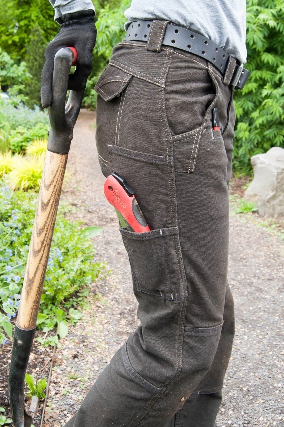 Hack it. Hike it. Hardcore outdoor action is all in a Day’s work. Named for Dovetail Workwear co-founder, Kate Day, who worked the land growing up in Maine, owned a landscaping business, and never saw a shrub she didn’t want to prune. Relaxed fit through the leg. Packed with reinforcements, from a double-button waistband up top, to tough cuffs at the bottom. This pant has our standard mid-rise at the front waist, but is higher-backed at the rear—because the only crack we like to see is dawn’s!