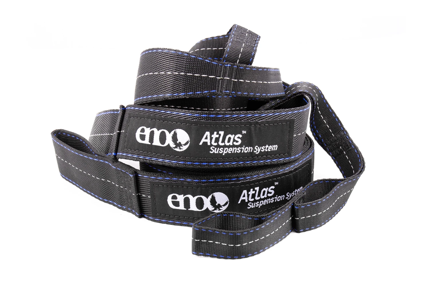 ENO pioneered the first ever knotless hammock suspension system, and over a decade later we have redesigned this best seller to help take your hang to the next level! The Atlas Straps innovative tapered construction decreases total weight, ensures increased tree protection, and integrates reflective stitching to improve nighttime visibility. This new Atlas Suspension System has the same strength and security of the original Atlas, with the same no-knots-needed setup to have you securely relaxing in seconds on any adventure!