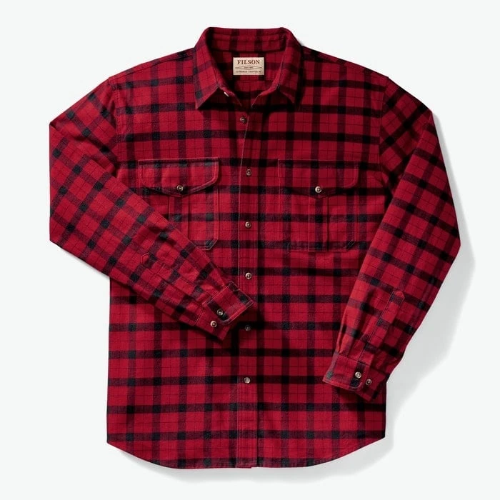 Our iconic flannel is brushed on both sides, adding a layer of softness and warmth that belies its thickness and weight. Ideal over a T-shirt in cool weather, or with a base layer and vest as the temperature drops. The dense, tight weave blocks chilly breezes, while adding a level of durability that’s unsurpassed. The pleated rear shoulders allow unrestricted ease of motion, whether you’re shouldering a shotgun, casting a fly or swinging an axe. Dual flapped chest pockets are gusset-expandable for bulkier items and secure with virtually unbreakable custom Filson buttons. Preshrunk