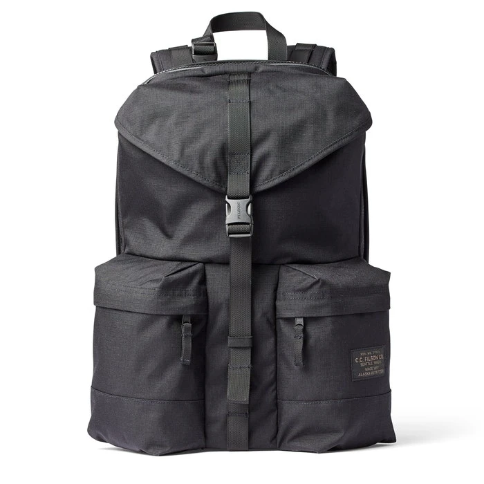 The main compartment secures with a time-proven cinch closure that’s protected by a buckle-down storm flap to ensure the contents stay dry. Behind that lies a padded laptop pocket that can be accessed through a water-resistant zipper without opening the main compartment. Exterior zippered pockets are sized to hold water bottles or quick-access accessories. D-rings on the shoulder straps provide attachment points for accessories and the top features a webbing grab handle with a buckle to secure the pack for transport or storage.