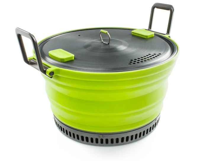 Silicone-sided pot collapses to a height of 2.1” for easy packing