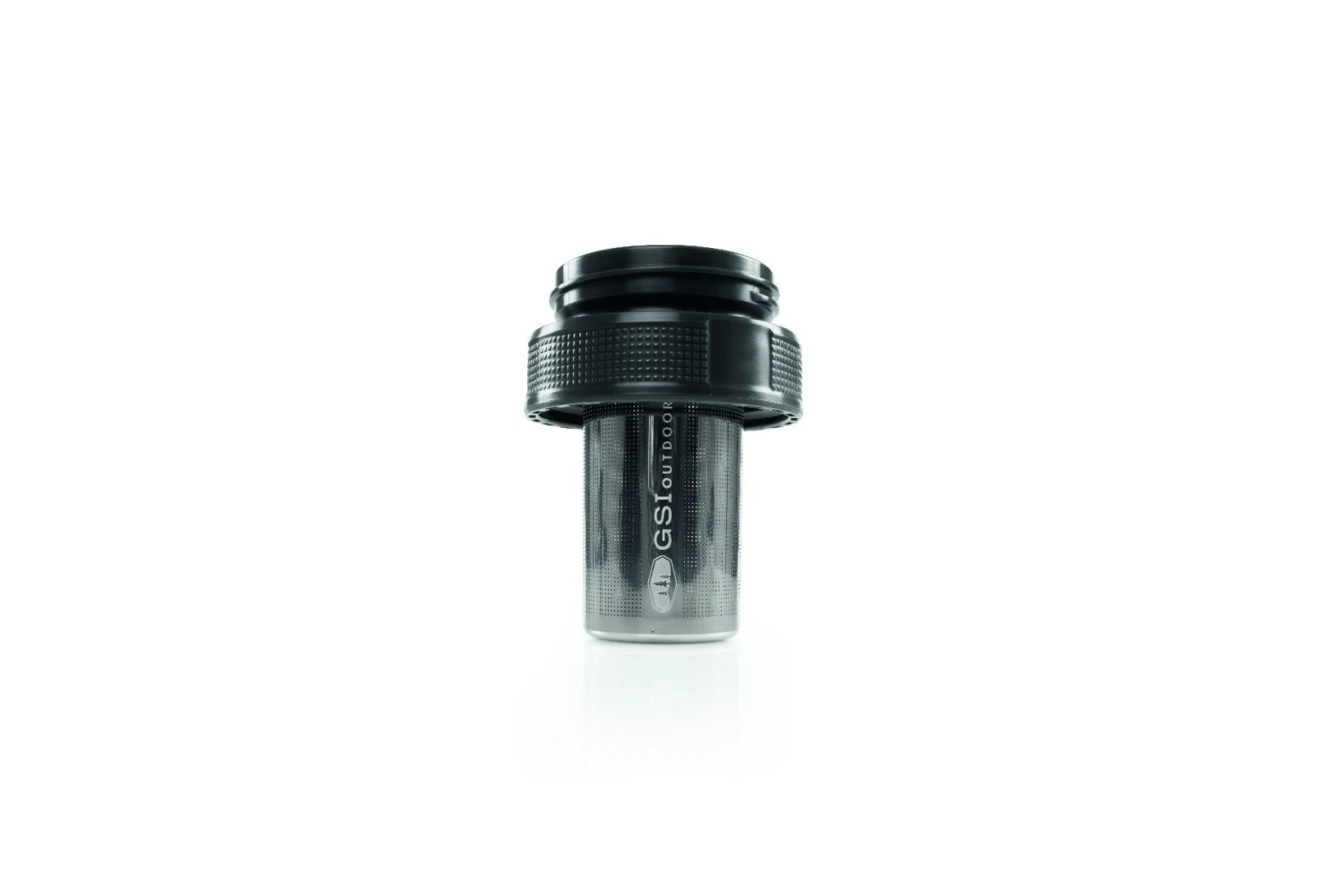 Turns your water bottle into an infusion brewing machine. 18/8 Glacier Stainless Steel Filter fi ts most standard wide-mouth water bottles. Works with medium and coarse-ground coffee or loose tea. Filter blocks coffee grounds and loose tea while drinking. Unique design keeps grounds separate for easy clean-up.