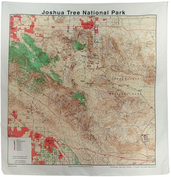 100% natural cotton bandanas printed in great detail and color with topographic maps of national parks. Each bandana measures 22″ x 22″.
