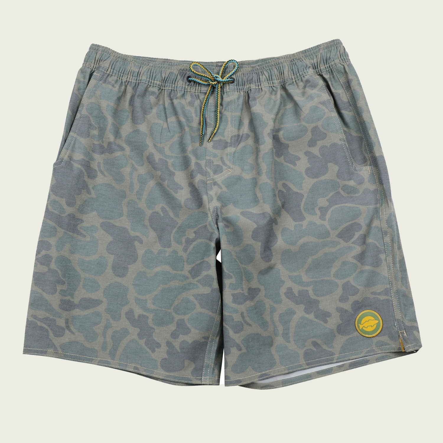 It’s all about comfort and style with our new washed Mallard camo elastic waist shorts. Constructed of a tri-blend fabric with a DWR finish to combat stains and added stretch for a better range of motion. With a low key elastic waistband and mesh lined pockets this short can do it all in and out of the water.