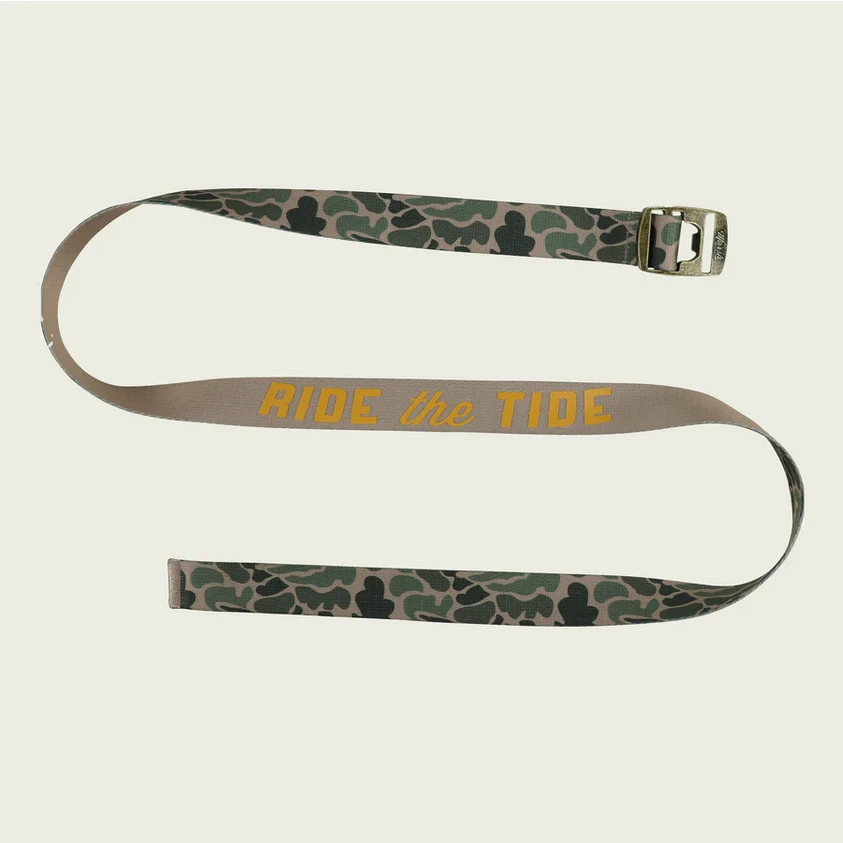 A durable quick drying belt in our Mallard camo. Complete with a bottle opener buckle to seal the deal.