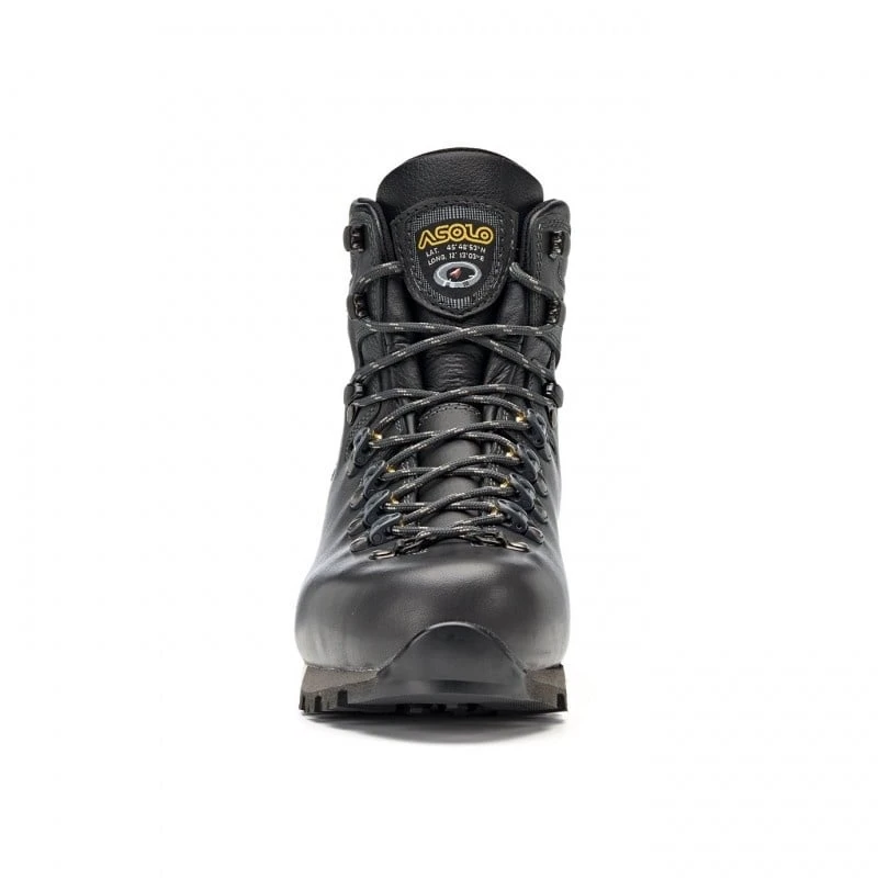 The water-resistant full grain leather upper offers protection, support, comfort and performance. Its Gore-Tex Performance Comfort Footwear lining guarantees waterproofness and breathability. The two-color mono-density microporous midsole offers stability and support; the polyurethane heel covered with a TPU film offers great cushioning. The Asolo/Vibram Master outsole has a self-cleaning design and uses the Vibram Mont compound which offers the best grip, performance and durability. The model is completed by the Micro Pully lacing system for a fast and precise lace up.