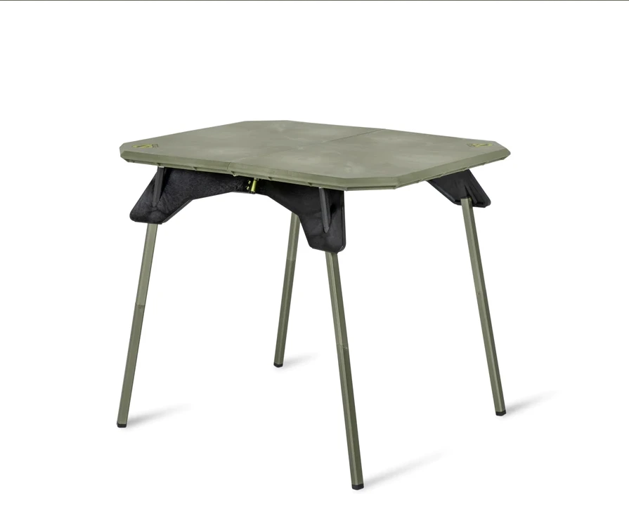 - Aluminum legs are integrated with zinc pole tips for a stable and supportive outdoor camp table.