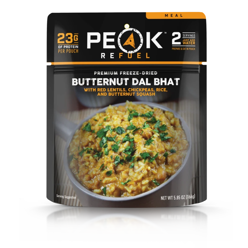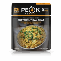 Whether you’re stopping for lunch on the trail or getting ready for dinner at your campsite, we guarantee you’ll want some Butternut Dal Bhat in your pack. With red lentils, chickpeas, rice, and butternut squash, this delicious dish will blow your mind! Oh, and did we mention it’s vegan? Just add 1 1/3 cups of boiling water and you’re set!