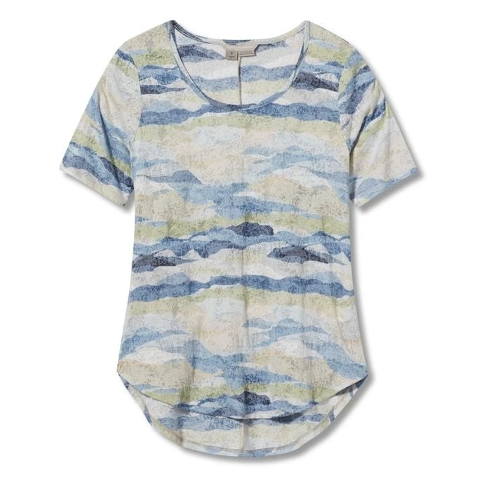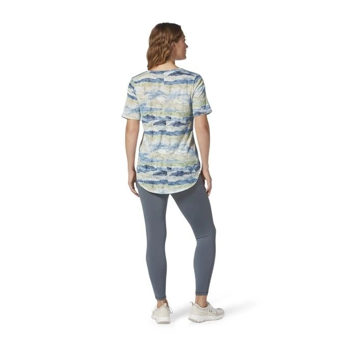 Light, soft, and airy, this versatile scoop-neck tee has a great look. The material blends natural comfort and technical performance, and the burnout print gives it dimension and style.