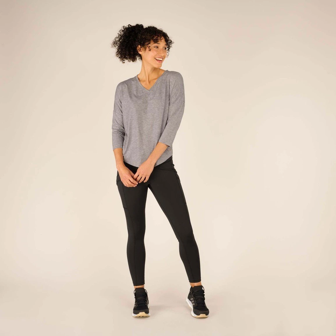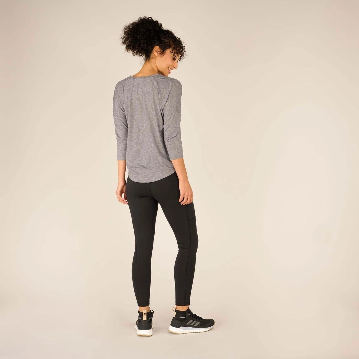 The Asha V-Neck ¾ Sleeve Top is the ultimate travel top, rich with sustainable fabric technology designed for all day comfort and performance. Made with Repreve® polyester, sourced from recycled plastic bottles, this tee is a true example of environmentally conscious clothing. Using drirelease® technology, the fabric helps to regulate body temperature, wicking excess moisture swiftly away from the skin, leaving the wearer dry and comfortable throughout the day. In addition, antimicrobial fabric treatment ensures a feeling of freshness, no matter how strenuous the activity. All this, along with being stain and wrinkle resistant, adds up to the Asha V-Neck ¾ Sleeve top being an undisputed travel essential.