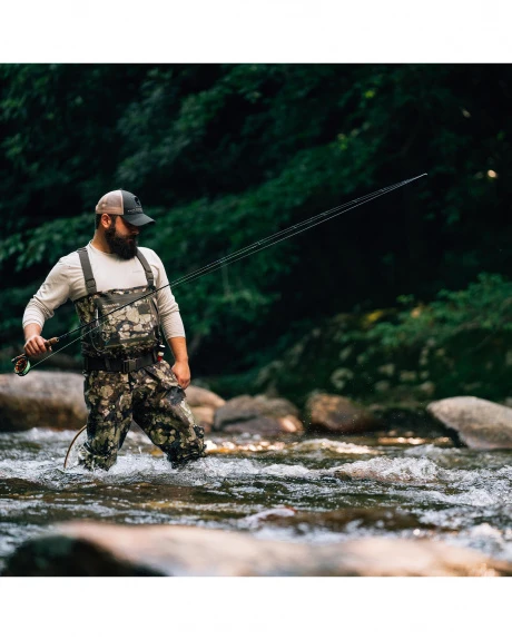 Stealth isn’t a fashion statement. It’s a science. Utilizing exclusive patterning created by Veil Camo, a leader in scientifically-engineered camouflage, Simms offers you the first wader designed to keep you from being seen by fish. If you’re like us, you’d travel halfway around the world for a chance at the fish of your dreams. Make the final feet count by getting closer in Riparian Camo.Â