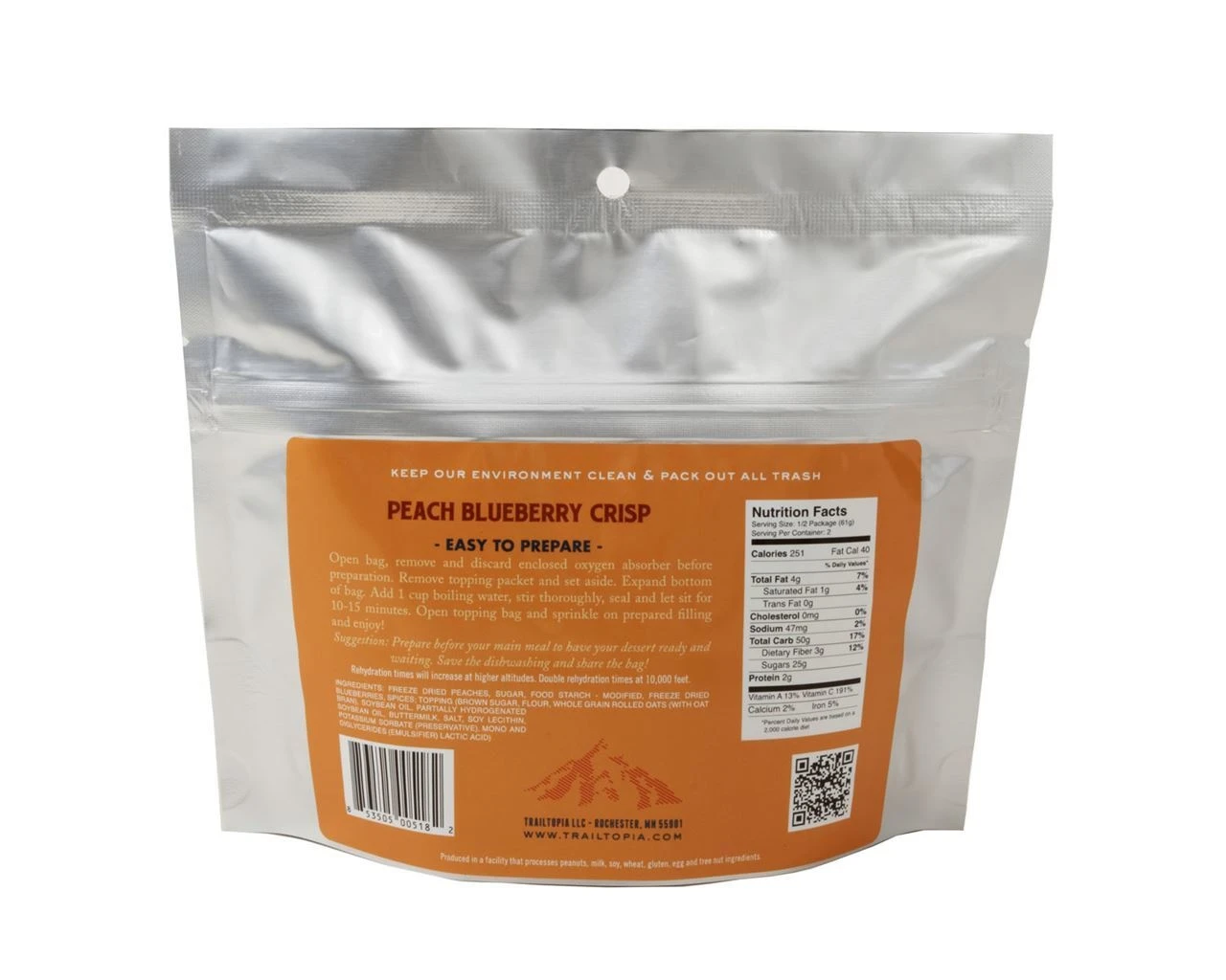One of our team’s favorites! Made with juicy peaches and bursting with blueberries, this crisp dessert truly satisfies the taste buds from all four corners of the mouth. Sprinkle on the side pack of homemade crisp topping, and voila!